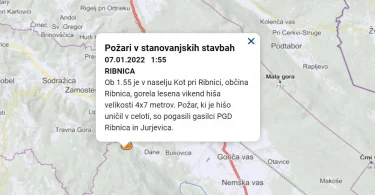 Kot pri Ribnici – V petek, 7. januarja 2022 ob 1.55 uri je v naselju Kot pri Ribnici, občina Ribnica, gorela lesena vikend hiša velikosti...