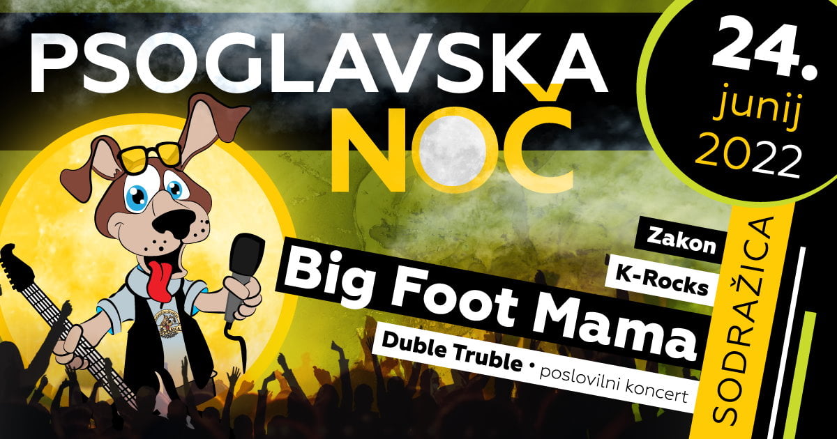 Sodražica bo v petek zvečer 24. junija prava prestolnica slovenskega rock’n’rolla 24. Ob zasedbah Zakon, Band K-Rocks in Duble Truble, ki jih sestavljajo povečini glasbeniki iz Sodražice, bodo na športnem igrišču za Osnovno šolo zagotovo največje zvezde Psoglavske noči Big Foot Mama. Po več kot 30-ih letih delovanja, osmih studijskih albumih in razprodanih največjih koncertnih prizoriščih v Sloveniji so se podali na veliko vseslovensko turnejo, na kateri je pomemben mejnik tudi Sodražica. Zasedba Duble Truble, ki je tudi na sceni tri desetletja, se bo publiki predstavila z energičnim poslovilnim nastopom.