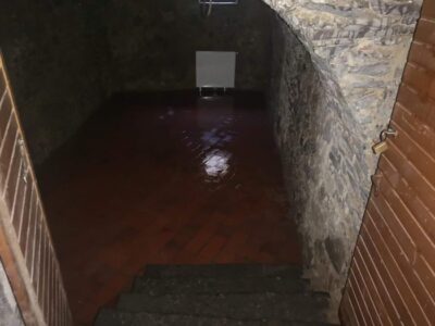 Stene, iz katerih so curljali potočki, so se v vseh prostorih napojile kot goba, dvignjeni parket pa je ponekod poškodovan z večjimi grbinami. Takoj so bili poklicani ribniški gasilci, ki so pomagali pri črpanju vode, kmalu pa so jim priskočili na pomoč člani Civilne zaščite in Komunale Ribnica. Gradbeno podjetje je namestilo sušilnike za odstranjevanje vlage.