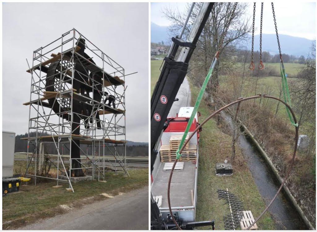 Po natančnem pregledu strokovnjakov iz restavratorskega centra in ZVKDS je bilo ugotovljeno, da je zaradi celostne izvedbe restavratorskih del potrebno leseno skulpturo demontirati in jo prepeljati v prostore restavratorskega centra. V preteklem tednu je bila izvedena demontaža lesene skulpture in transport le-te v delavnico restavratorskega centra, kjer bodo strokovnjaki na podlagi analize stanja obstoječih lesenih elementov določili nadaljnji potek potrebnih restavratorskih posegov na leseni skulpturi.