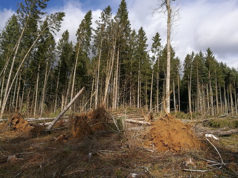 Območje, ki je redko poseljeno in dobro prepredeno z gozdnimi cestami, je v večjem delu še vedno neprehodno, saj je večina gozdnih cest zaprtih zaradi podrtih dreves. »Smreke imajo plitev koreninski sistem, krošnja pa je vedno zelena. To pomeni, da se težko obdržijo v tako hudem vetru, kot smo ga imeli v ponedeljek in torek,« pravi Mirko Perušek.