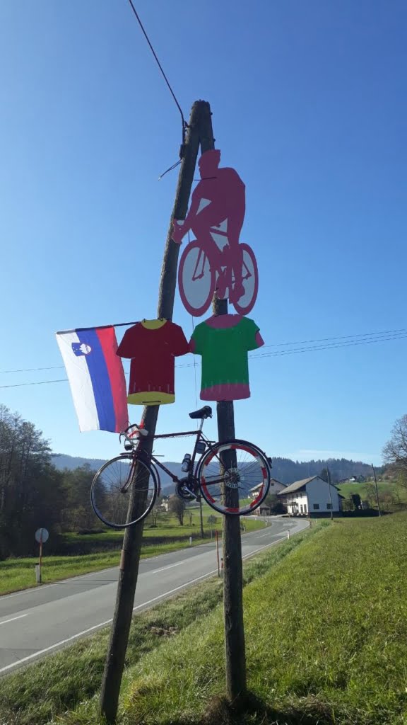 Slatnik – Pod Slatnikom ob glavni cesti so na domiseln način počastili zmago Primoža Rogliča na Vuelti 2020.